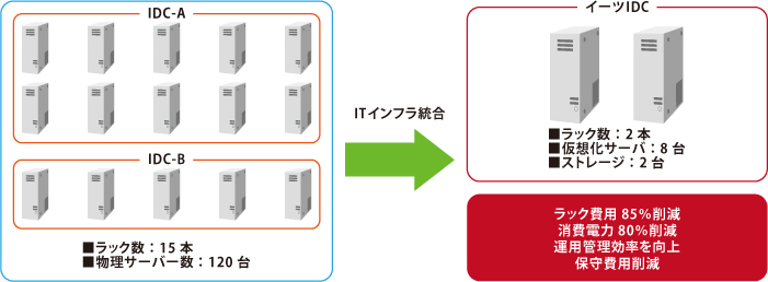 ご提案フェーズでコスト削減効果を無償でご提示いたします(イーツデータセンターへの移設が前提となります)。